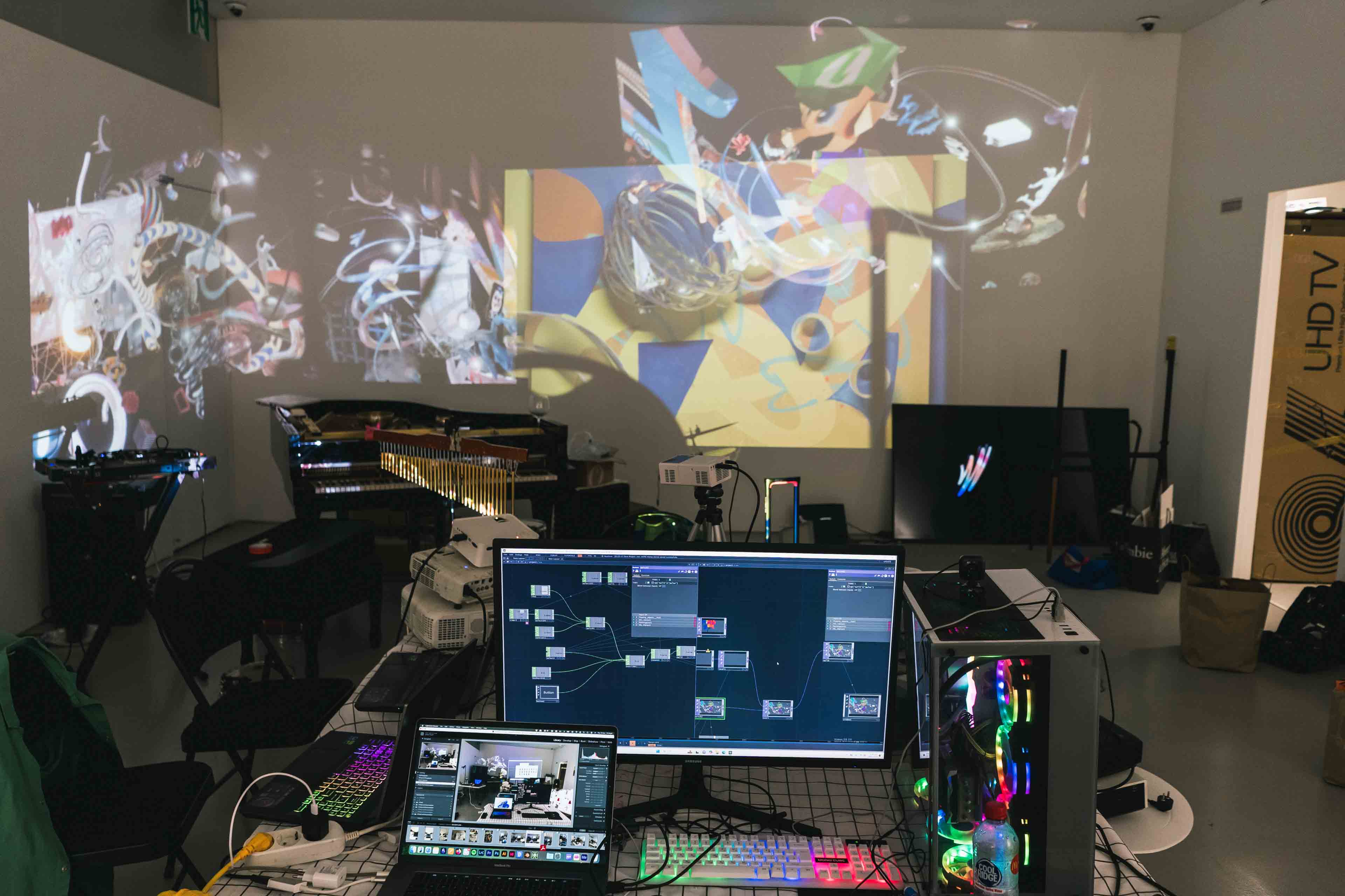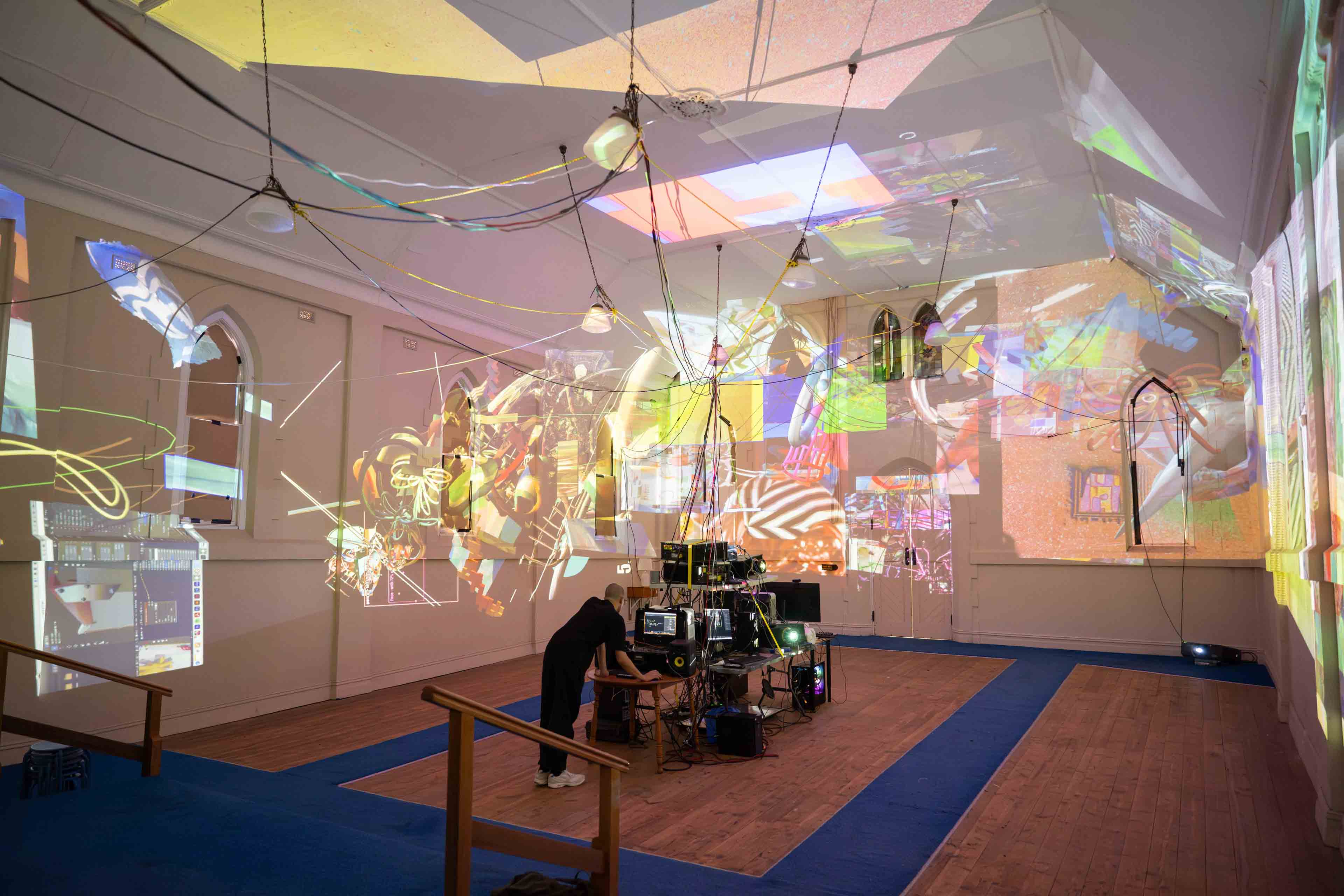 Description: Presented in Seoul, South Korea at K-Auction Gallery as a part of a two week residency in the city. Process-based, collaborative, multimedia immersive installation using as many projectors and computer as could be sourced in one week. Content was drawn from my archive of video and images of previous work, as an installation work, and operated as a live performance in collaboration with Jehyun Shin, Songyong Hong and other collaborators, students and disabled artists.